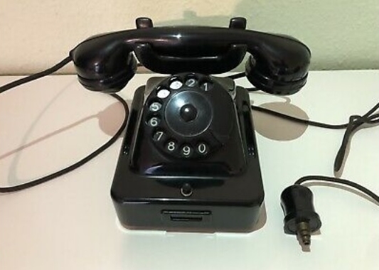 Die Hörergabel war jetzt niedriger als beim Vorgängermodell und aus Bakelit. Die Erdtaste saß nun auf der rechten Seite, die Wählscheibe war noch aus Blech.