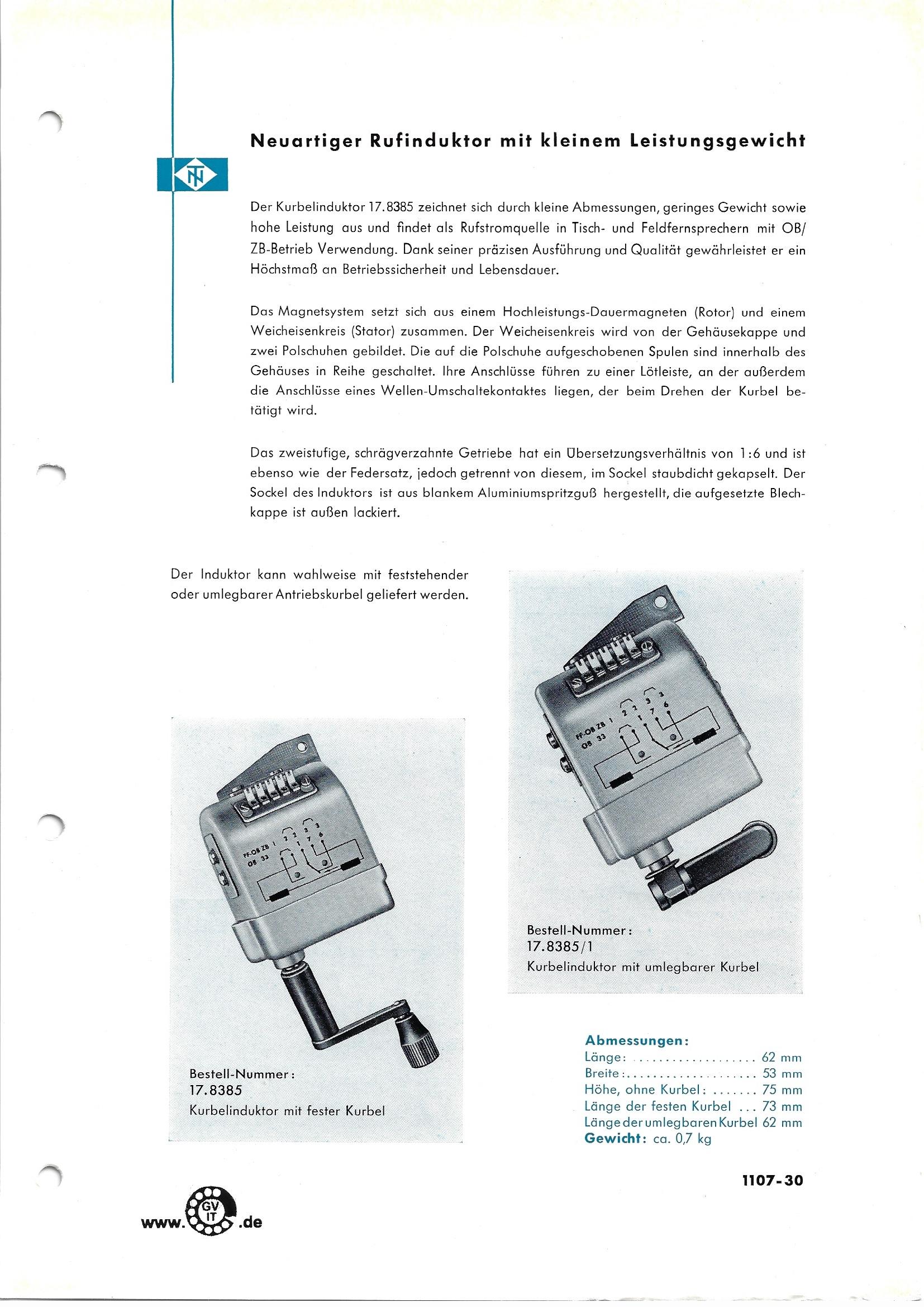 Funktion im Stromlauf siehe Techn. Grundlagen: Nummernschalter