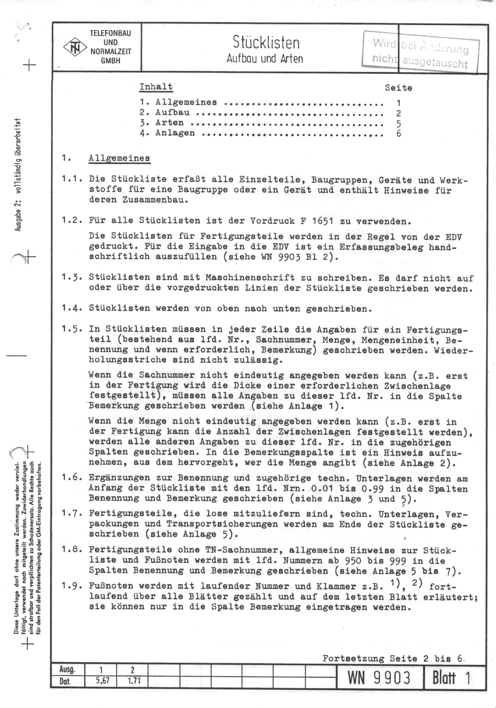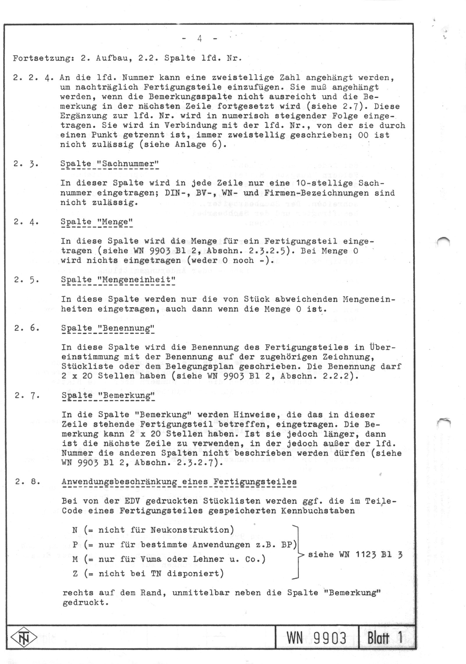 Bei TN war alles gut organisiert. Dafür gab es diverse Handbücher und Leitfäden. Vorgaben z.B. für Entwicklung u. Dokumente wurden in der Werknorm (WN) veröffentlicht. Die folgenden Links zeigen Einzelseiten der WN: