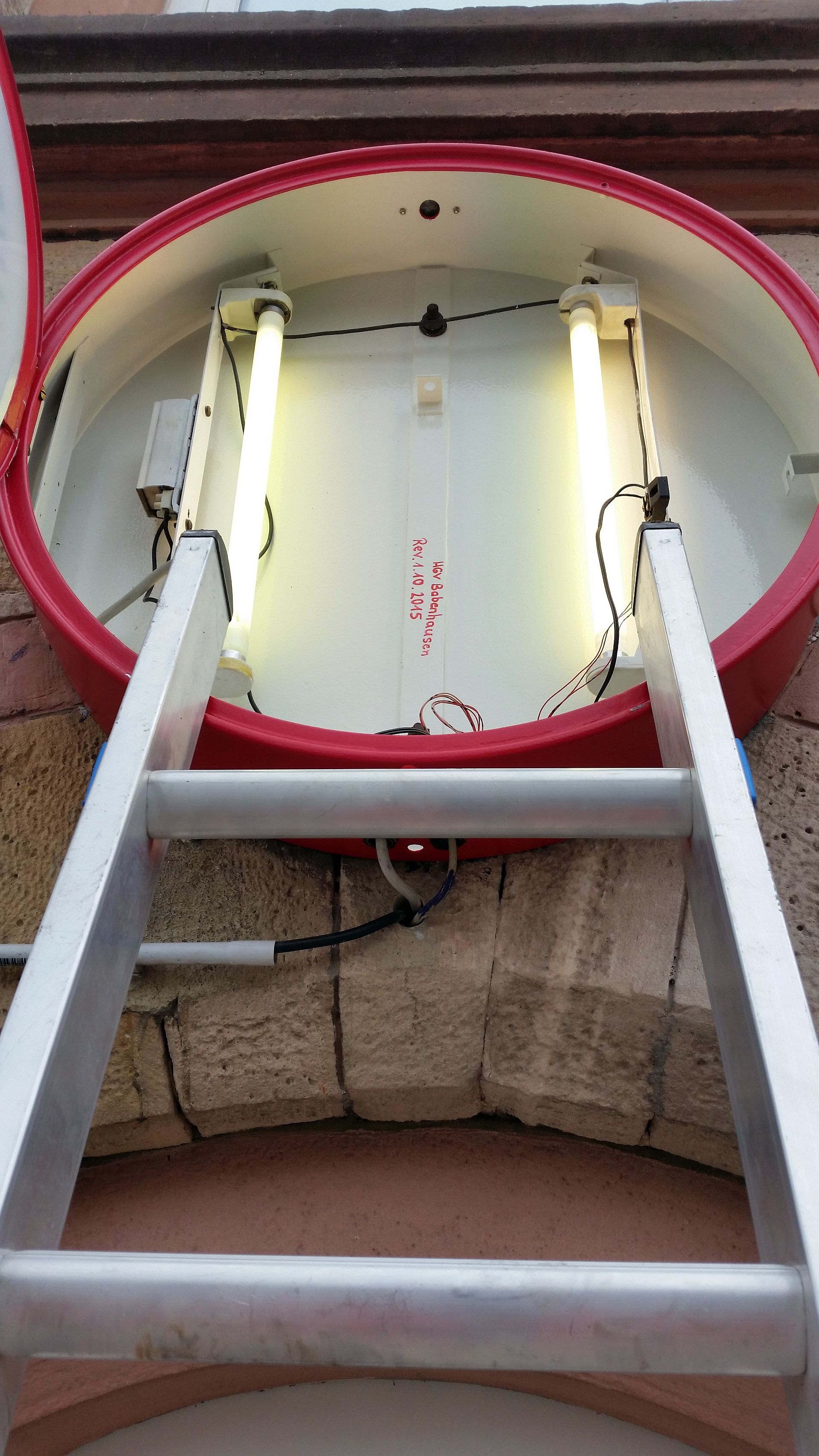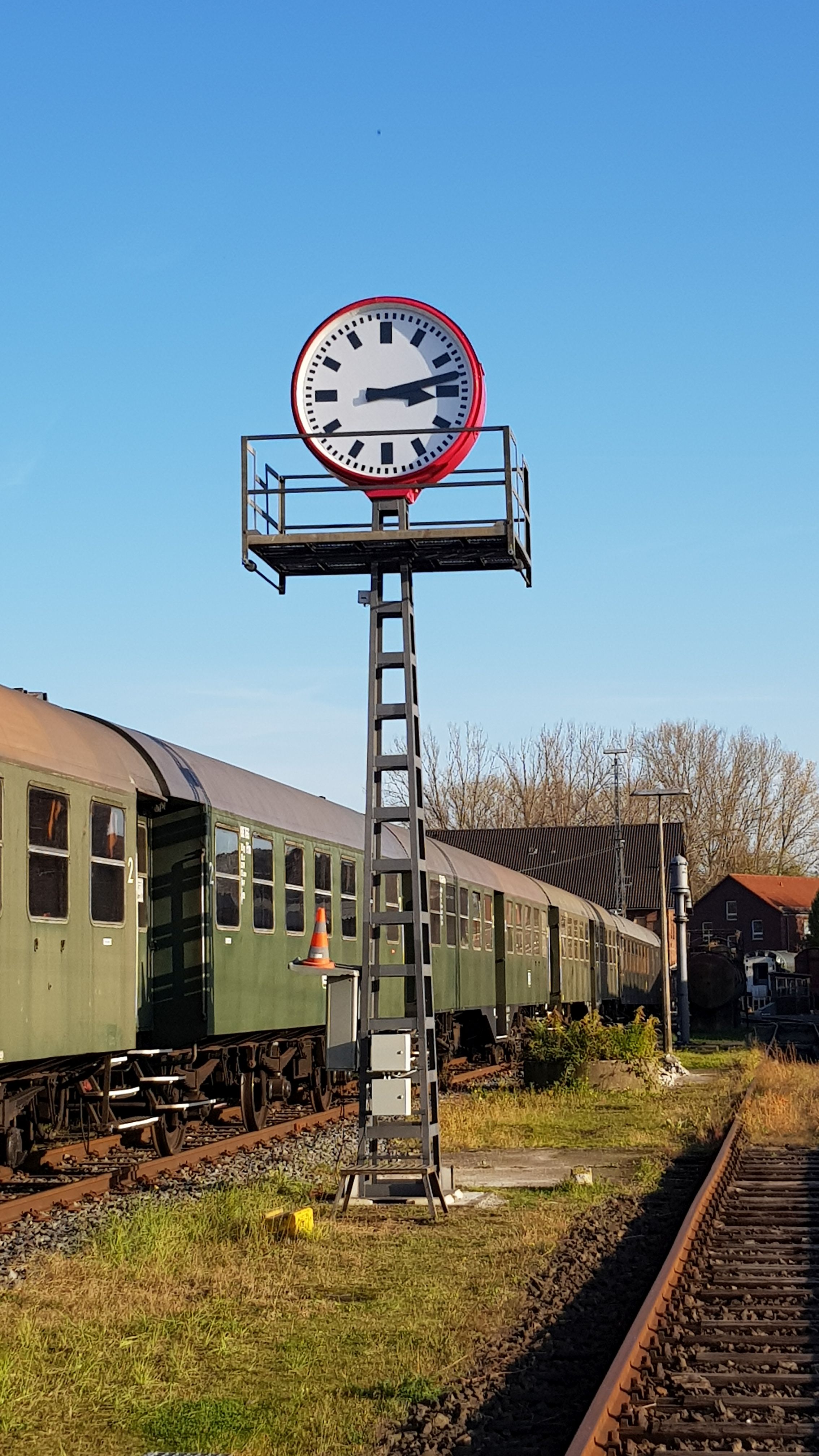 Der DB AG war es zu teuer diese Maßnahme zu stemmen, und ließen die Uhr samt Mast beim Verwerter liegen, dort konnten wir die Uhr mittels Schwertransport bergen. ins nahe gelegene Museum bringen und dort aufarbeiten. Bei der Demontage der Uhr durch die DB wurde wohl das Gewicht der Anlage unterschätzt und ist beim Abbauen abgestürzt. Dies war sichtbar an der krummen Bühne die aufwändig gerichtet werden musste.