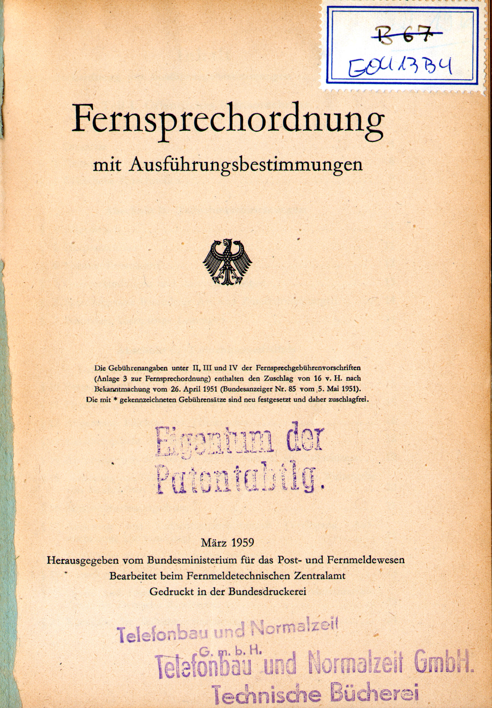 Fernsprechordnung (FO) mit Ausführungsbestimmungen