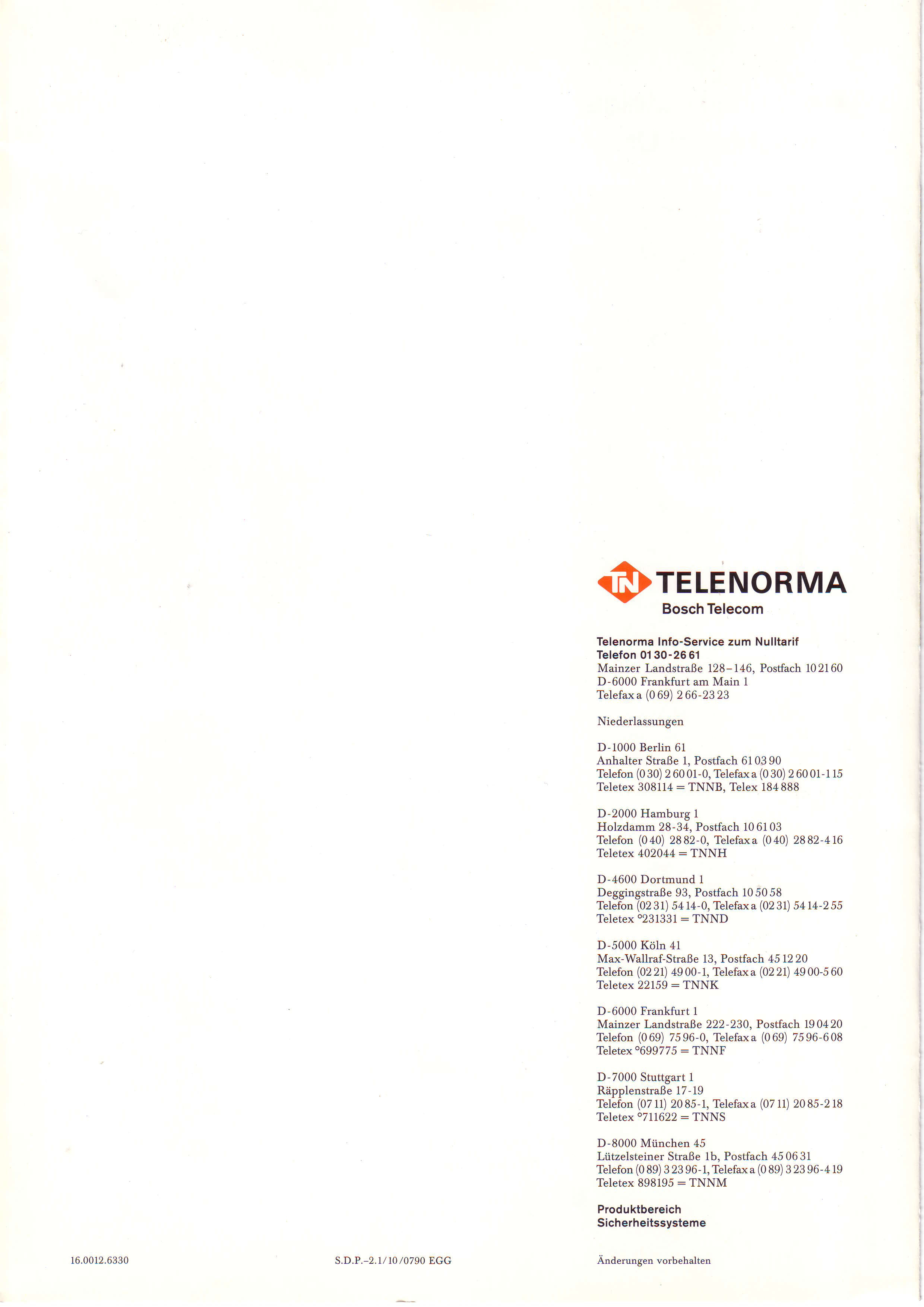 Datenblatt BZ 1060 (Vertrieb des Systems seit 1987)