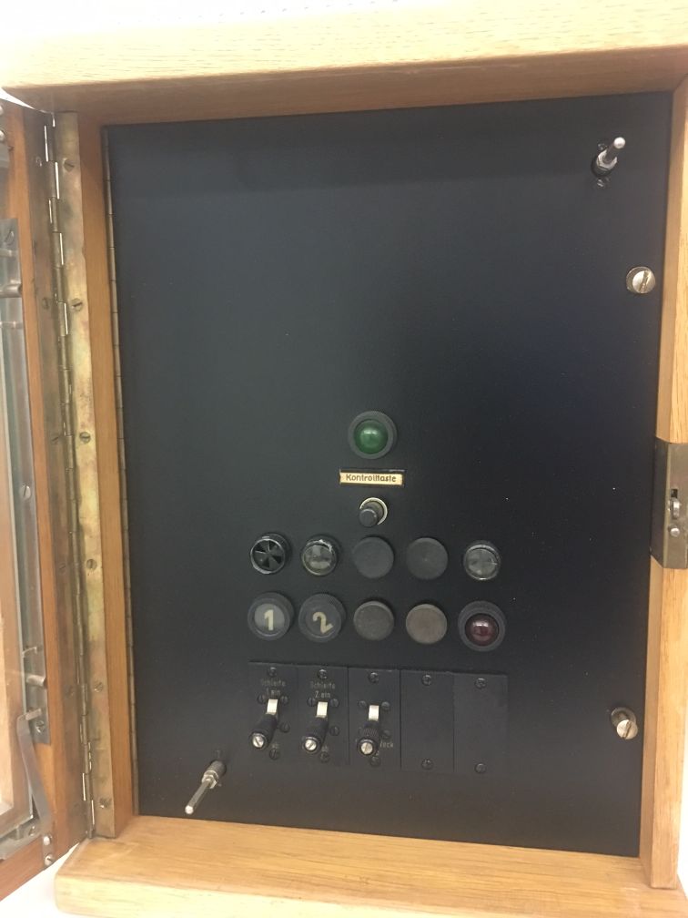 Abb.: Kellogschalterzentrale 4 Schleifen im Holzgehäuse (um 1950)