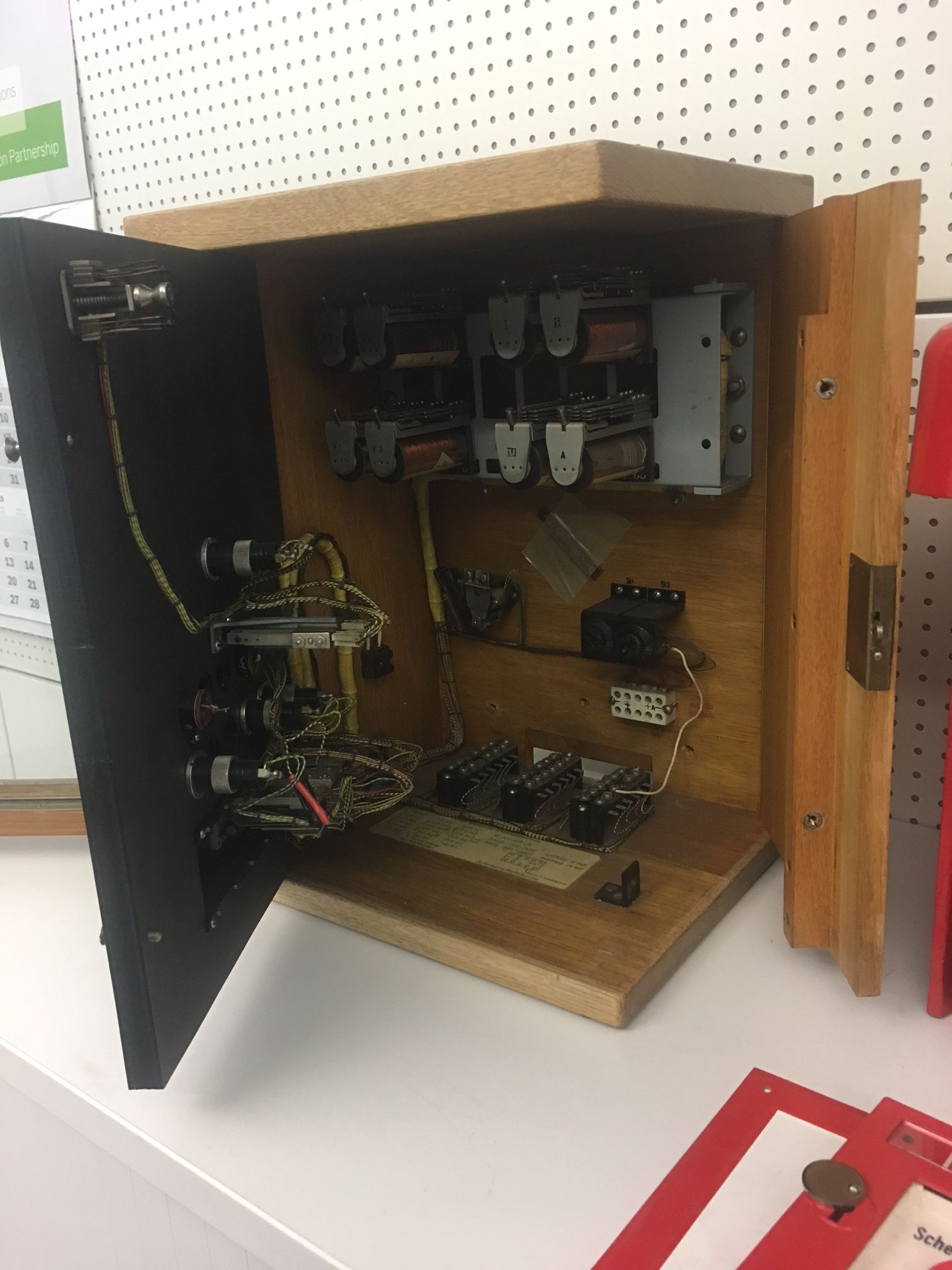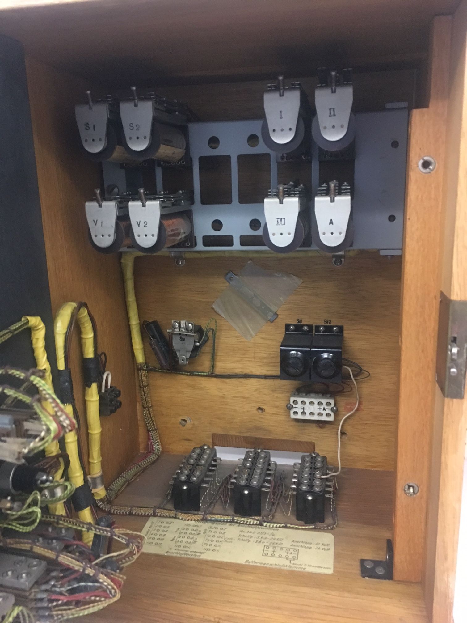 Nachfolgende Fotos zeigen eine Kellogschalterzentrale mit 2 Schleifen im Holzgehäuse ( um 1950 )
