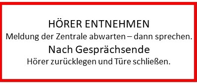 Der Hörer verdeckt auf dem Foto zum Teil die Information auf dem Hinweisschild für die Revisionstelefonie. Nachfolgende Abb. zeigt den vollständigen Text: