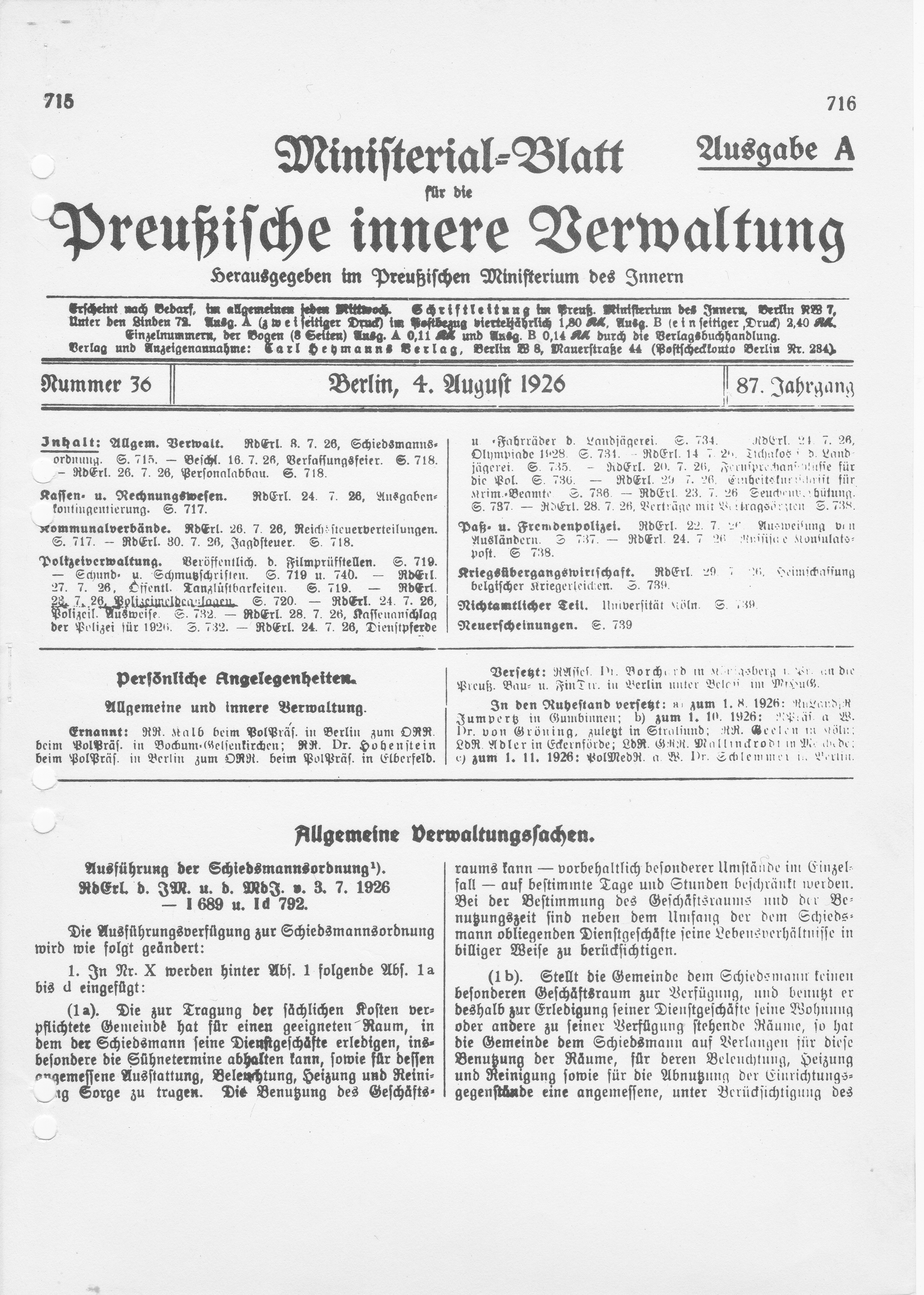 Historischer Erlass von 1926 u.a. über Polizei-Meldeanlagen