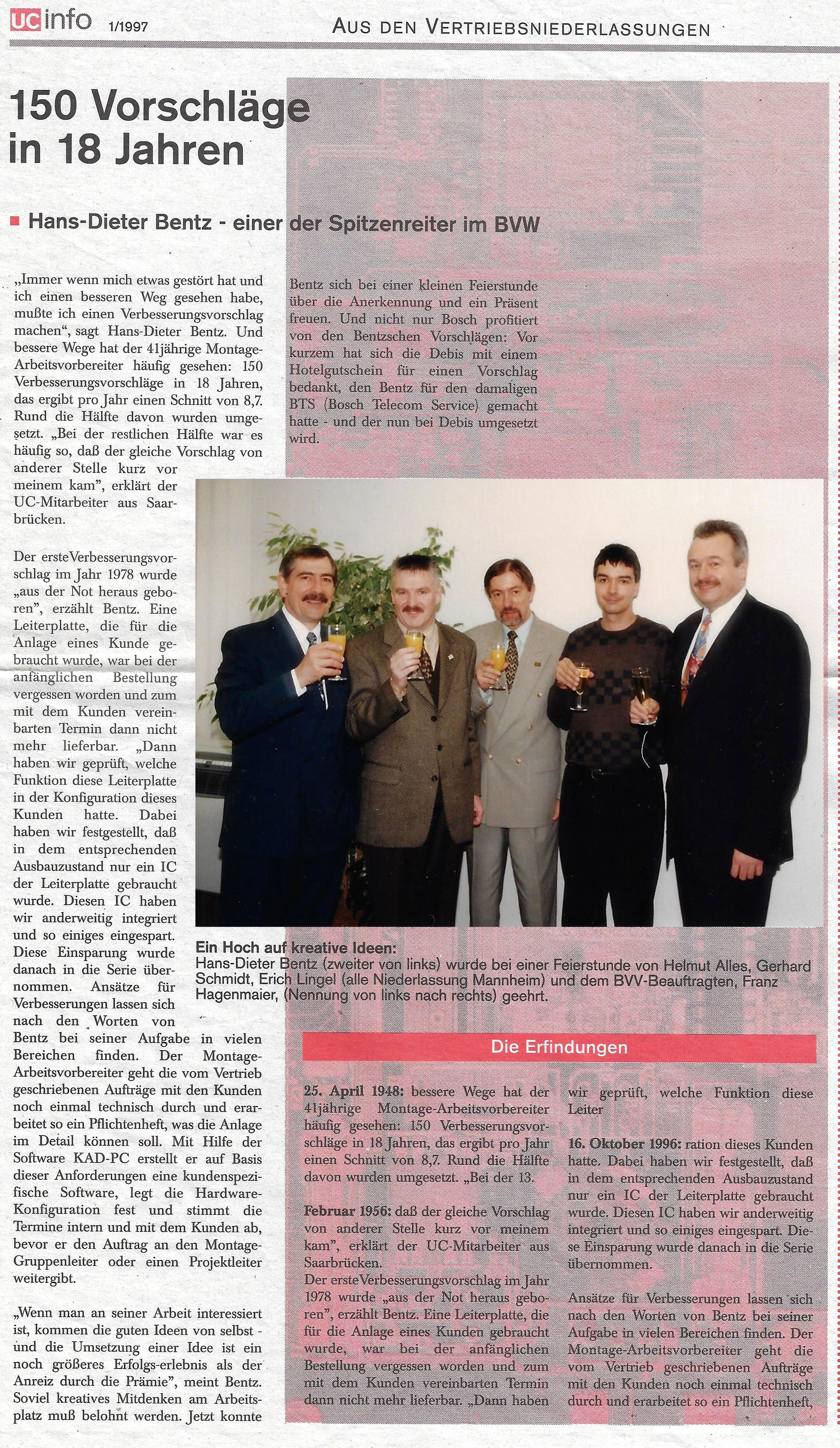 Beispielhaft sind auch persönliche Einzelleistungen erwähnenswert. Siehe Preisverleihung 1997 links.