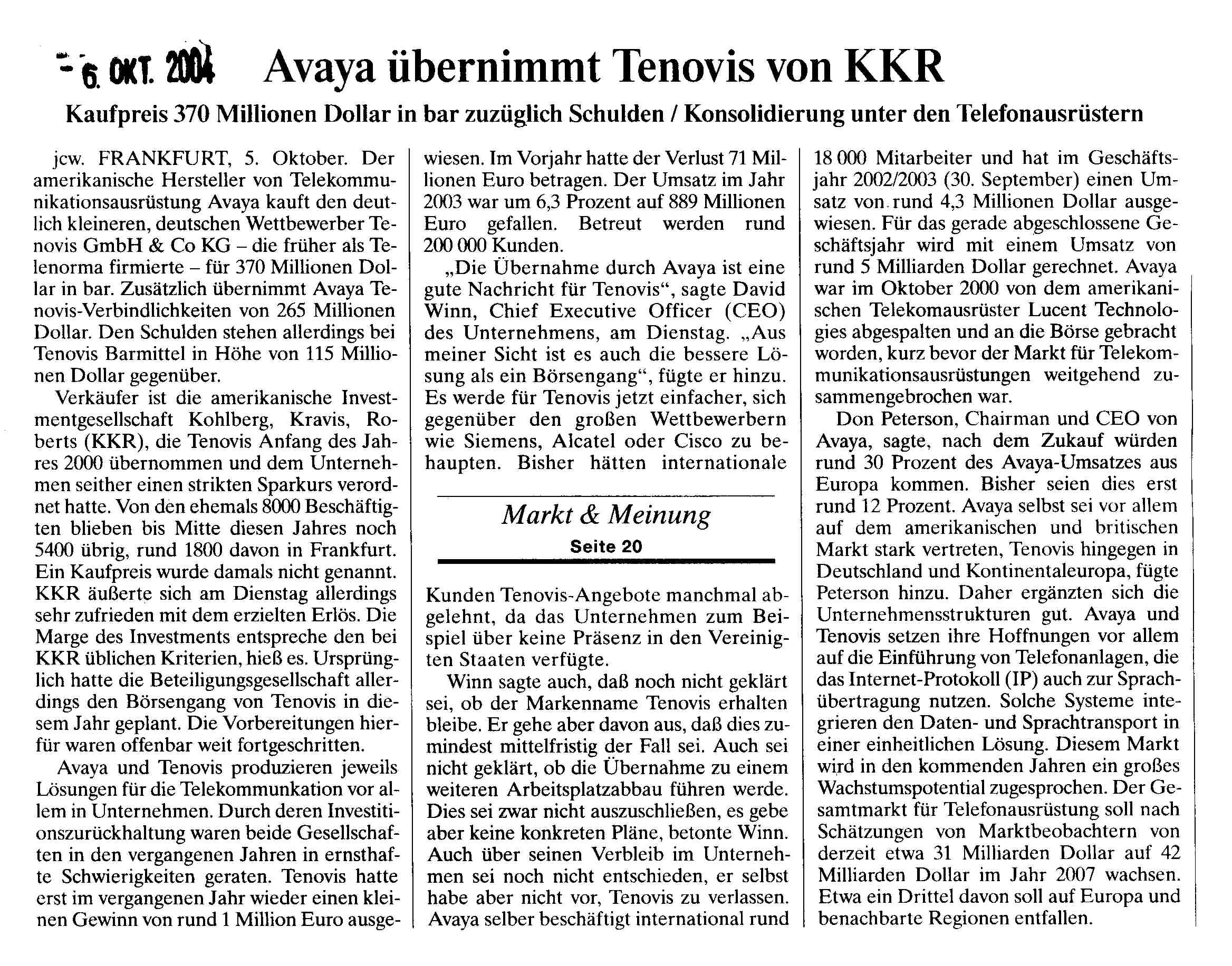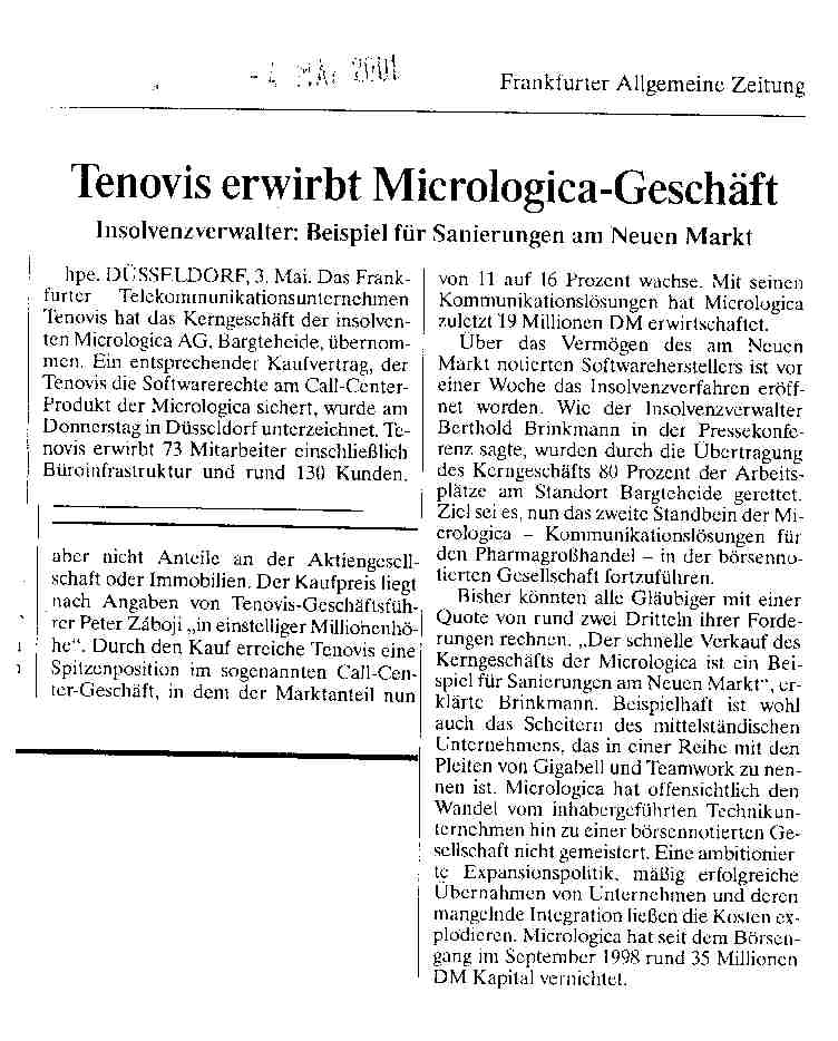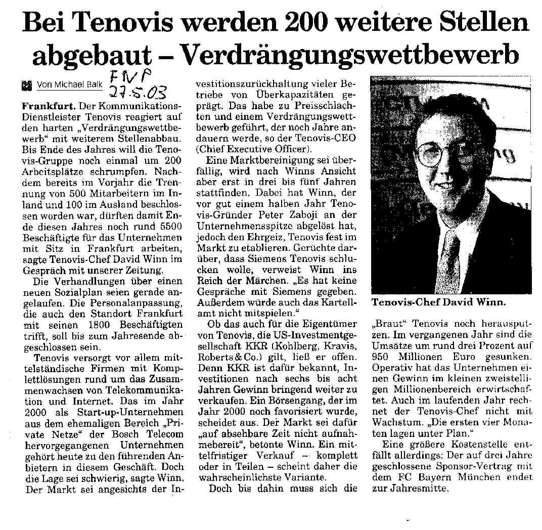 2003 Tenovis streicht 500 Stellen aus Frankfurt