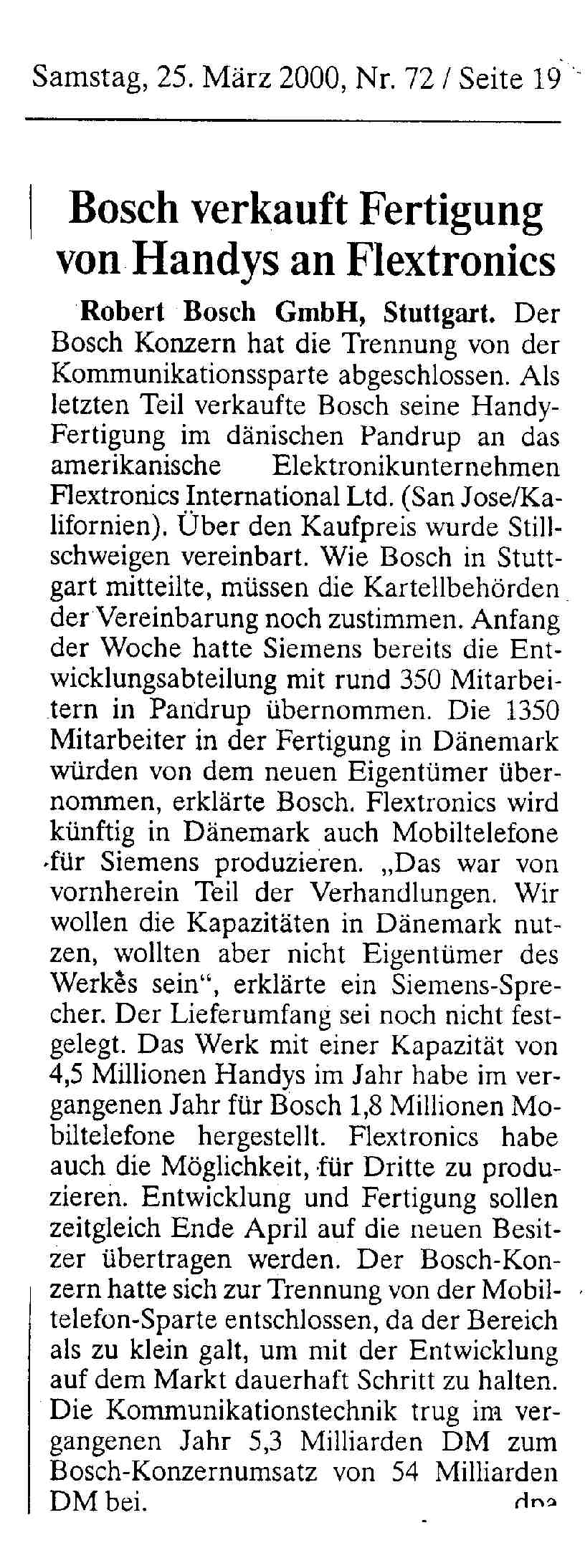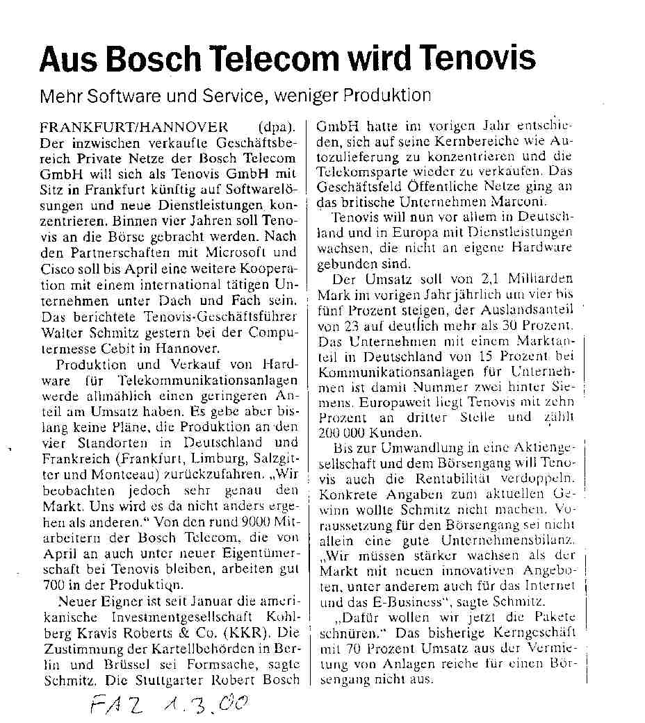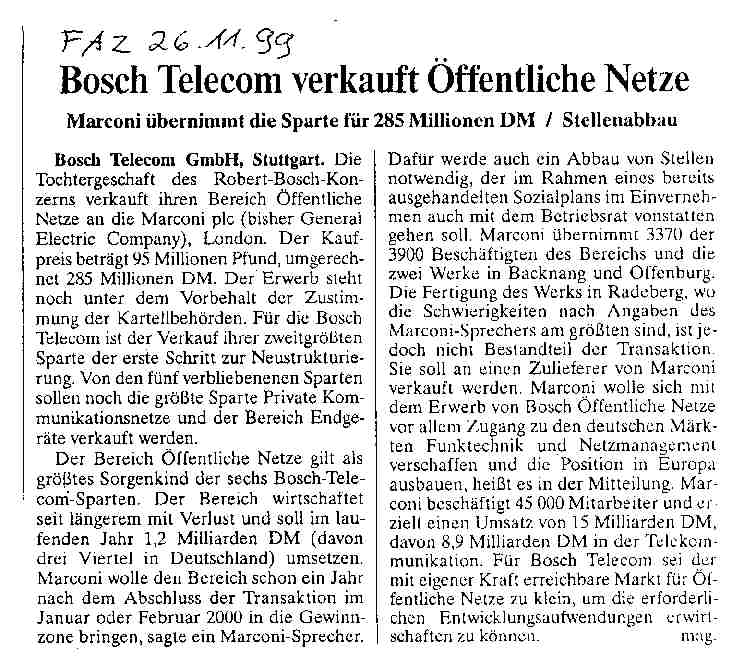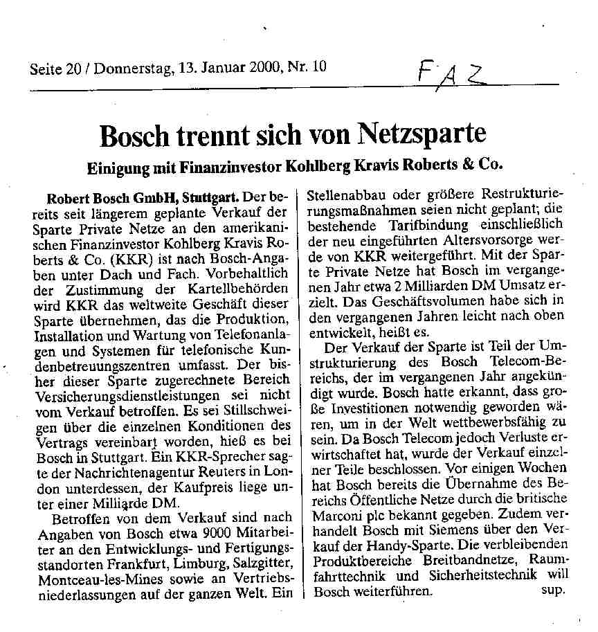 2000 Presseinformation: Bosch trennt sich vom Bereich Privater Netze