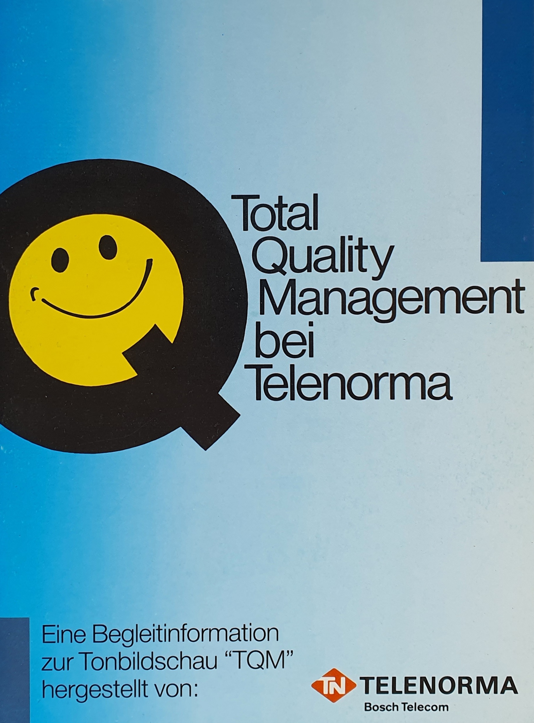 TQM = Total Quality Management ist die Weiterentwicklung des Gedankens, dass Qualitätsmanagement sich nicht auf Produktqualität reduzieren darf, sondern das gesamte Unternehmen und die Kundenzufriedenheit einbeziehen muß. Alle Mitarbeiter sind für Fehler verantwortlich.