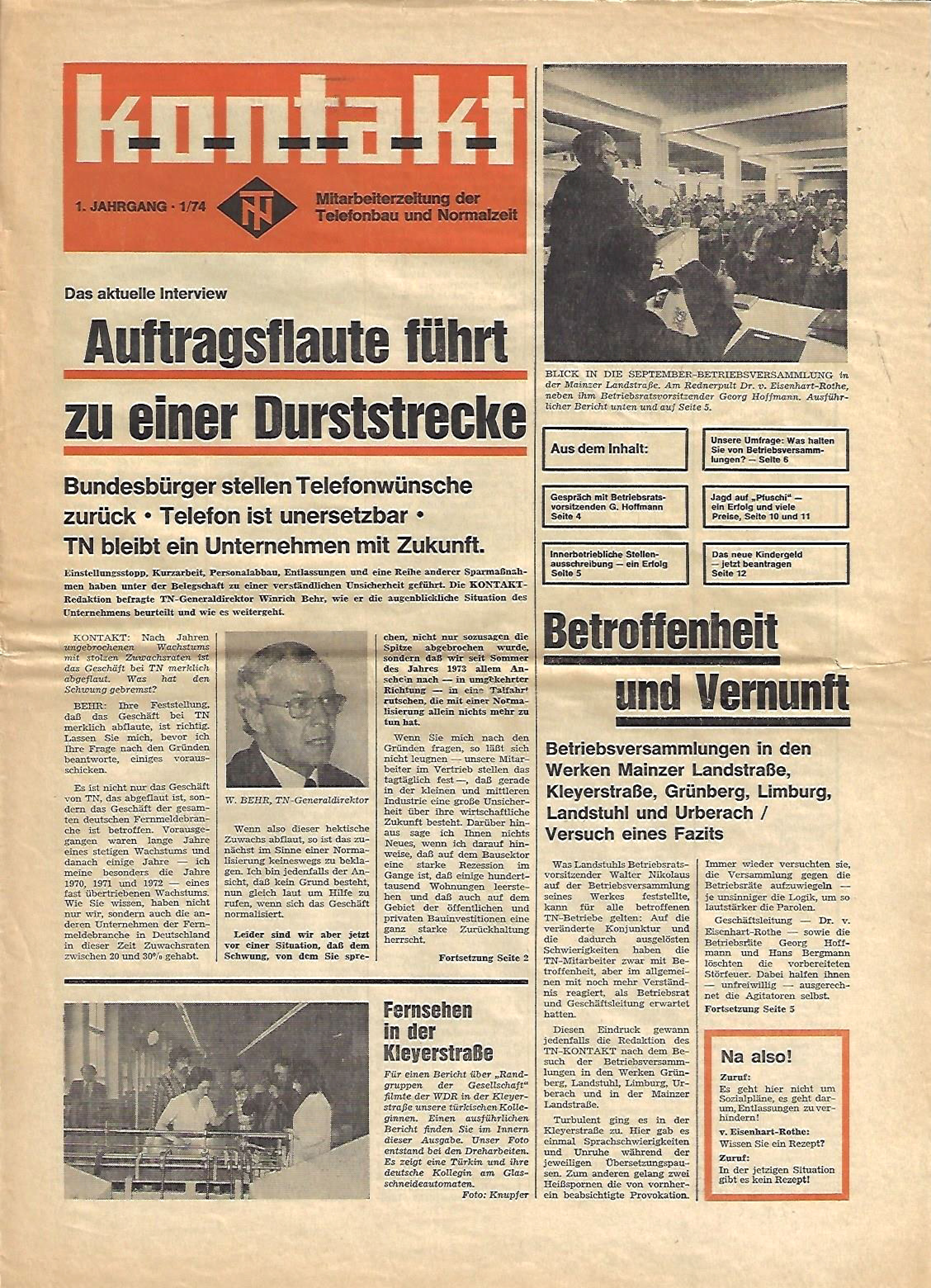 Die Mitarbeiterzeitung erschien von 1974 an mit einer Auflage von 20.000 Exemplaren bis 1991 ungefähr 4-5 Mal im Jahr und ersetzte die Mitteilungen an die Belegschaft.