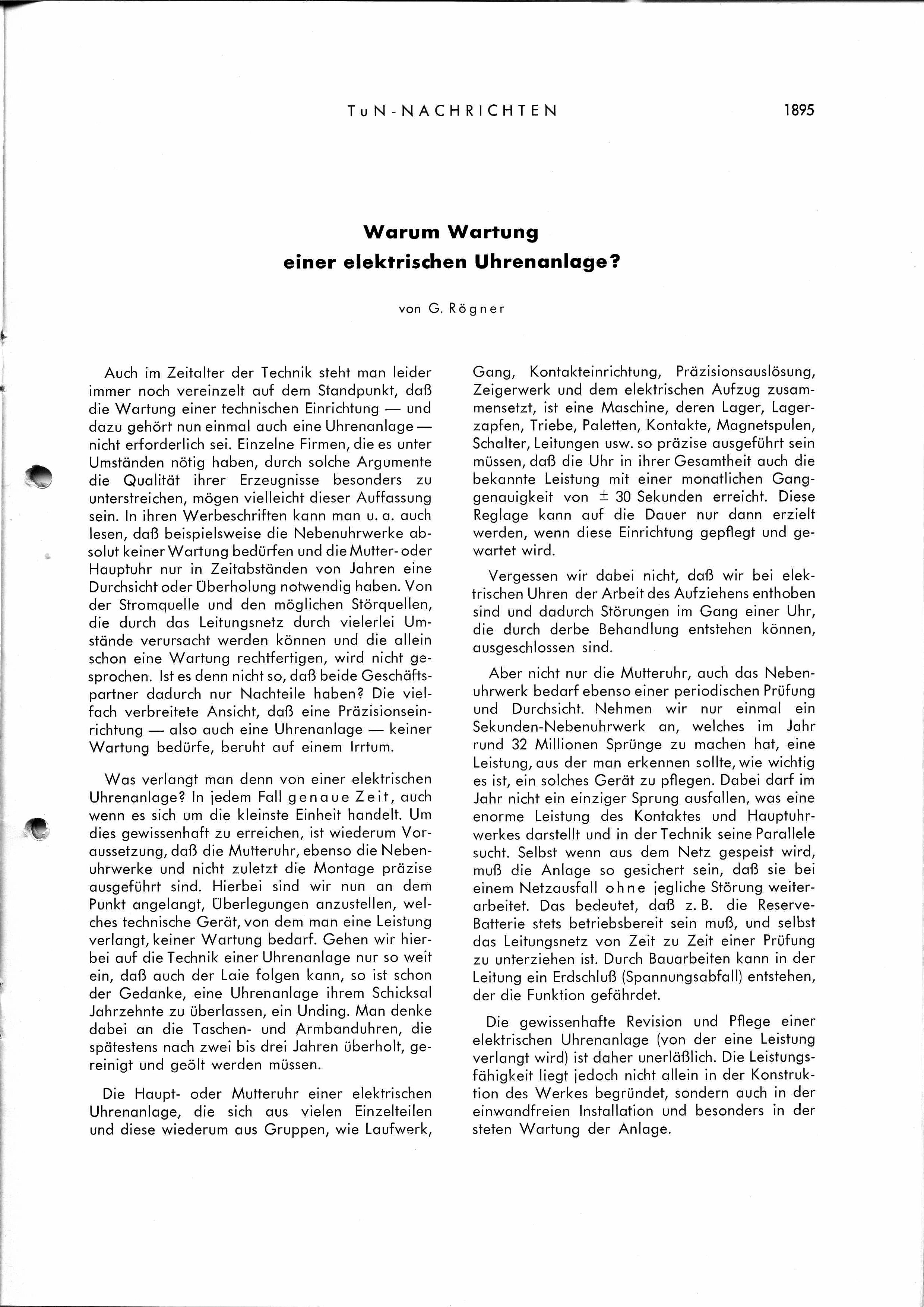 1954 Warum Wartung einer elektrischen Uhrenanlage?