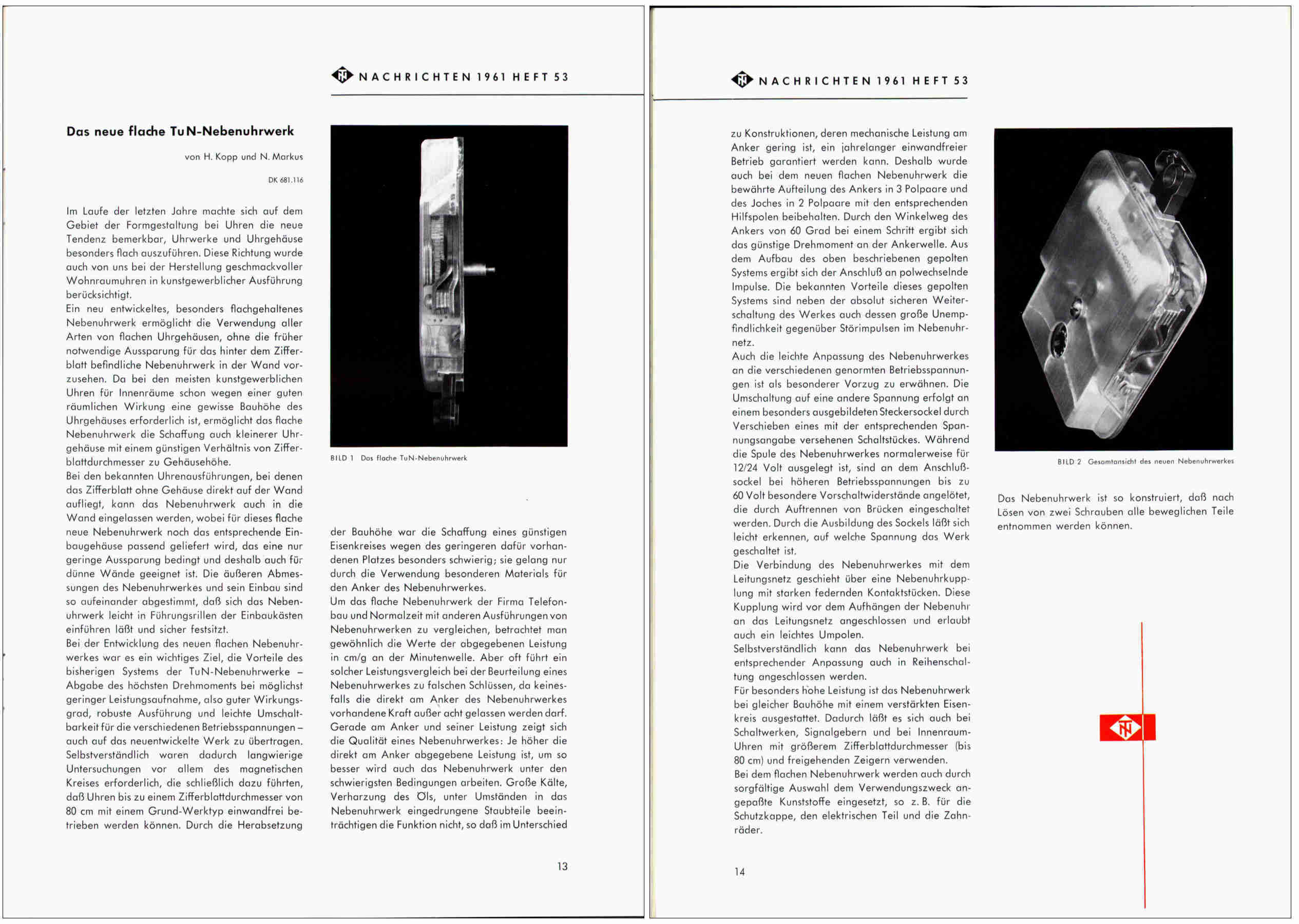 1961 wurde das neue flache TN-Nebenuhrwerk in Serie gefertigt